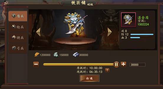 1. 兵器:兵器是较为昂贵消耗的资源,战斗力提升十分可观,但在竞技场没有作用。高阶兵器对粮食消耗特别大,建议优先把武将的兵器带满,再考虑带高阶兵器。给铁匠铺派遣武将可减少打造时间。